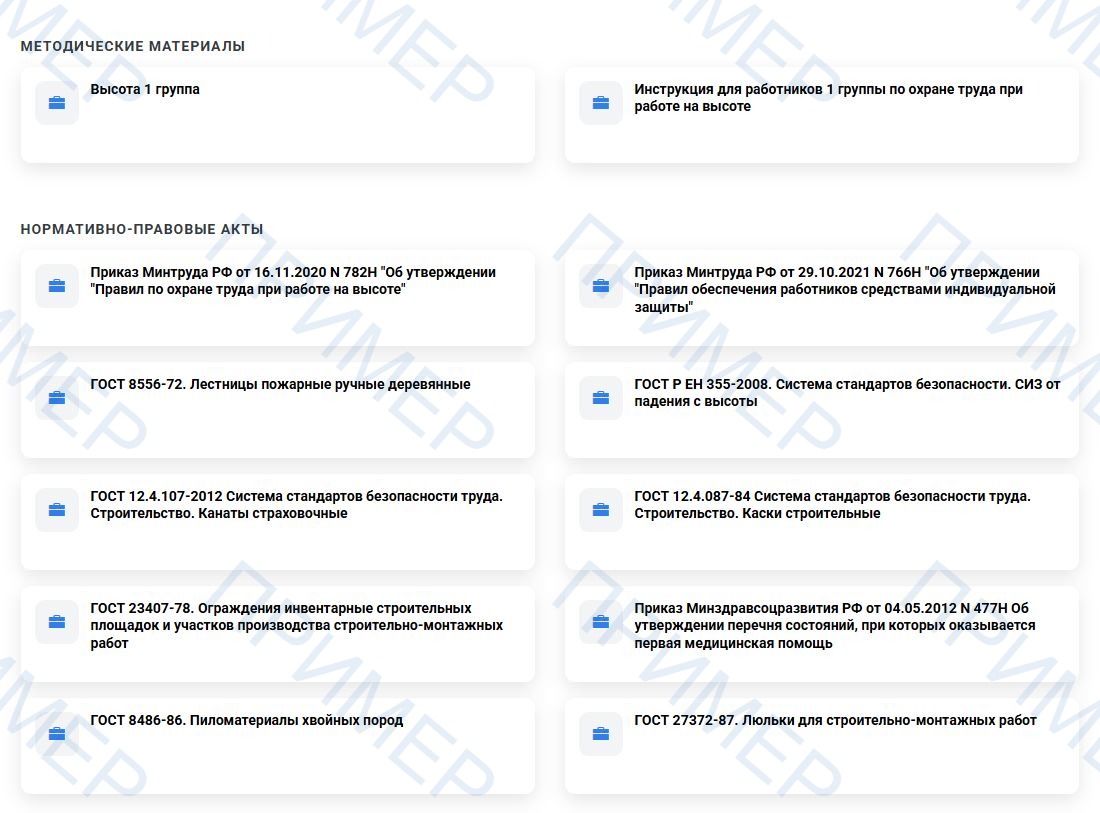 Программы обучения безопасным методам и приемам выполнения работ повышенной опасности, к которым предъявляются дополнительные требования в соответствии с нормативными правовыми актами, содержащими государственные нормативные требования охраны труда: